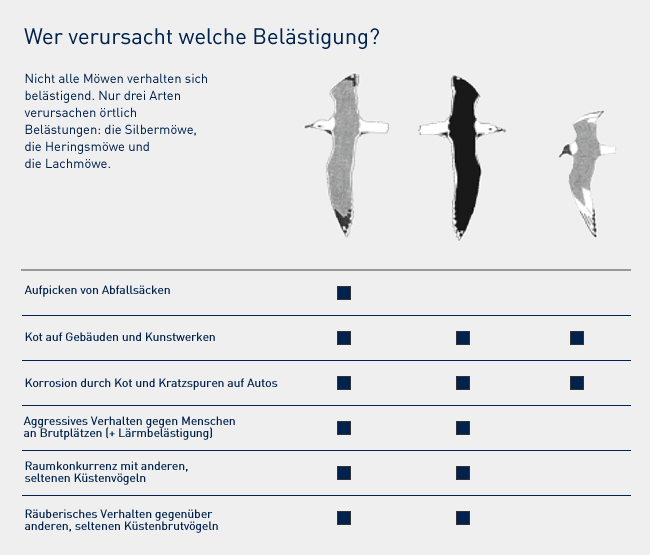 - Möwen und Abfall Anders als mit den brütenden Möwen kommen Klagen über Möwen, die das öffentliche Gebiet mit Abfall verschmutzen, über die ganze Küste hin vor, und sogar im Binnenland. Lies mehr »