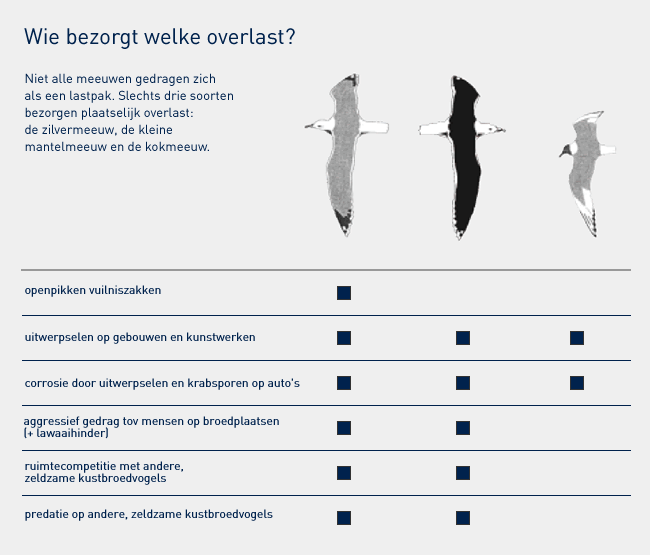 - Meeuwen en afval Anders dan met de broedende meeuwen, doen de klachten over meeuwen die het openbaar domein vervuilen met afval zich over de ganse kust en zelfs in het binnenland voor. Lees meer »